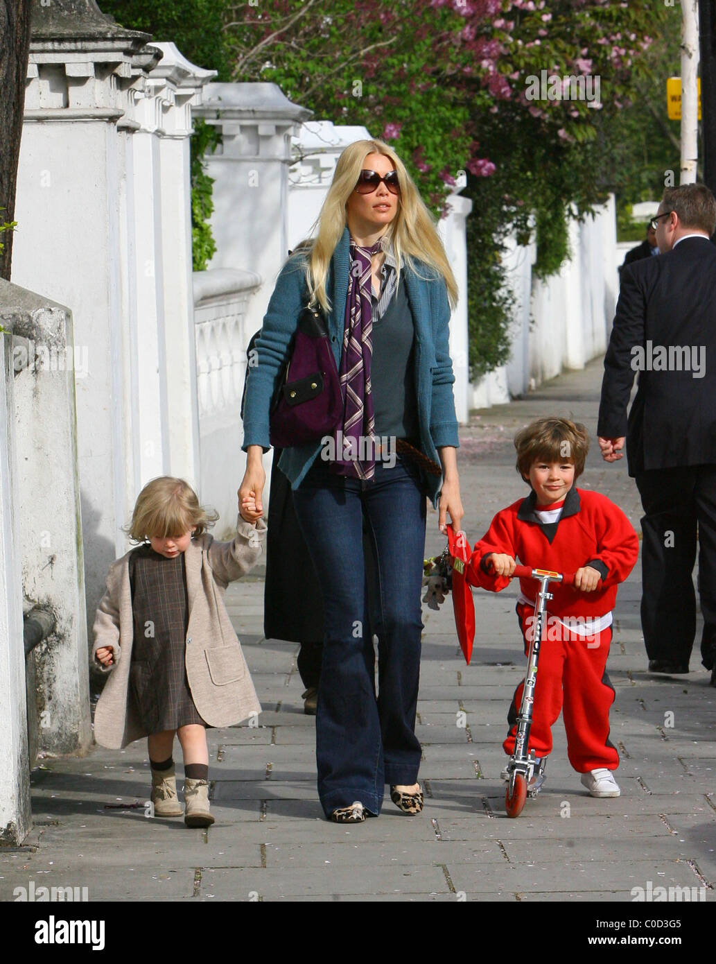 Claudia Schiffer Zu Fuss Ihren Kindern Clementine Und Caspar School London England 25 04 08 Stockfotografie Alamy